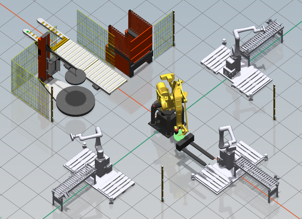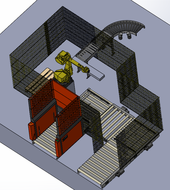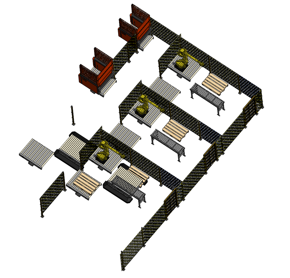 Pour les cadences les plus élevées, nous concevons des îlots de palettisation complets intégrant plusieurs robots.